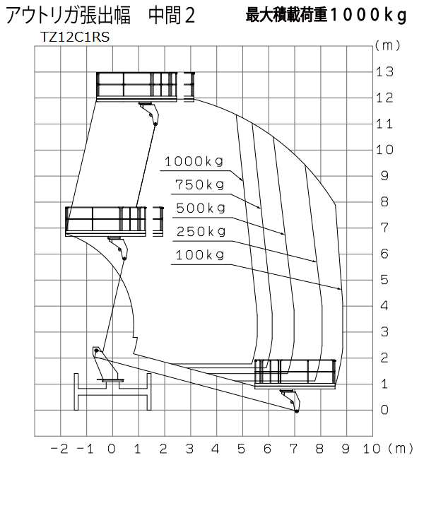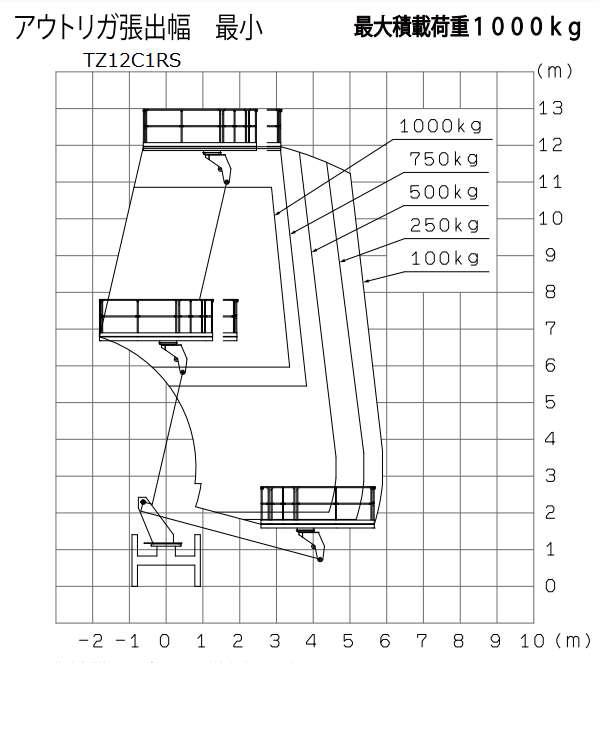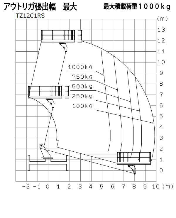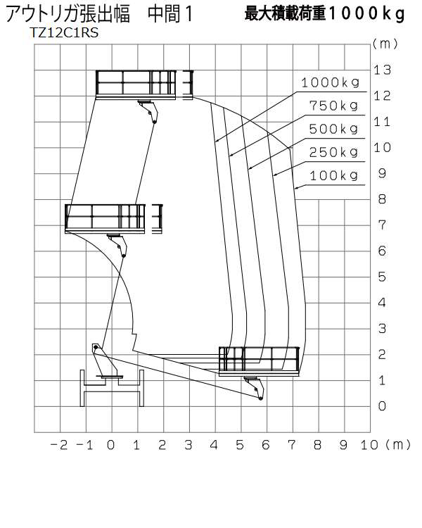 TZ12C1RS 油圧系安全装置、ブーム・作業床干渉防止装置、ブーム・キャビン干渉防止装置、音声通知装置、アウトリガ張出検知装置、起伏・旋回速度規制装置、作動停止スイッチ、下部優先スイッチ、非常用ポンプ、ジャッキ・ブームインターロック装置、上部操作レバーガード、フートスイッチ