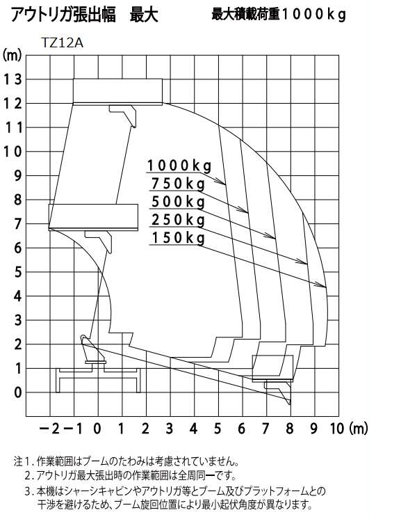 TZ12A 油圧系安全装置、アウトリガー張幅検知装置(AMCS)、作動停止スイッチ、キャビン・ブーム干渉防止装置、ブーム作業床干渉防止装置、非常用ポンプ、旋回・旋回速度規制装置、音声通知装置、ジャッキ・ブームインターロック装置、レバーガード、レバーガード、フートペダル